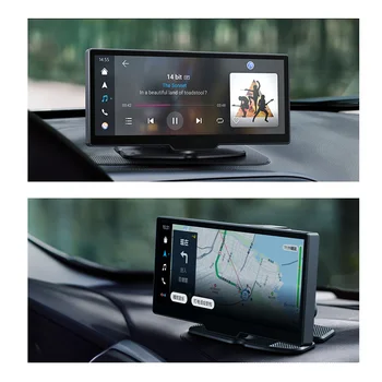 It can realize online navigation after connecting to Apple mobile phone carplay or Android mobile phone Android Auto, and supports voice commands. Also supports playing music and FM.