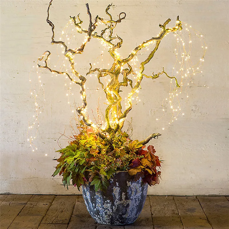 Twining around flowers, plants, trees and vines, or pinned across walls and ceilings, creating starry effect.