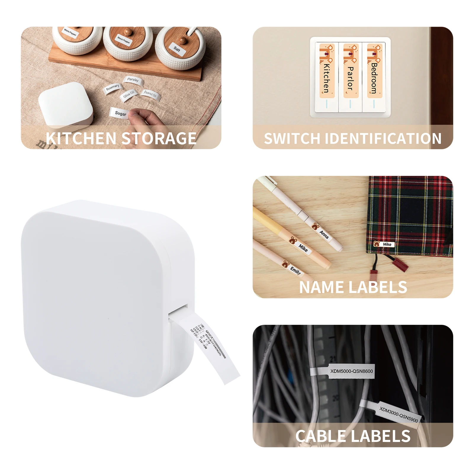 Multifunctional Label Printer – Mini and portable label printer able to print various stickers such as prince tag, text, icon, frame, picture, time, 1D code, QR code, line etc. Widely used in home storage, makeup remark, journal making, office, study.