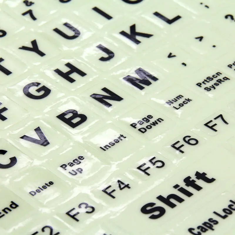 SRLuminous English Full Keyboard Sticker Film Glow in the Dark Capital Letters Sticker with 2 Fonts