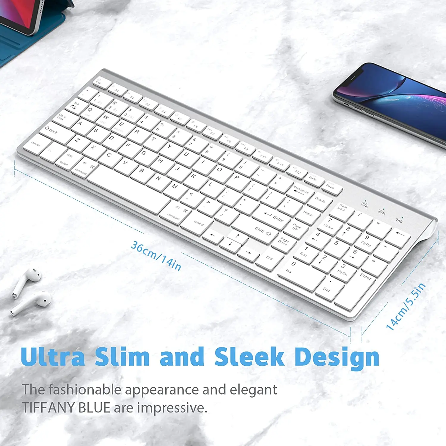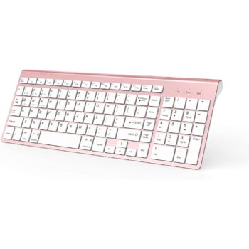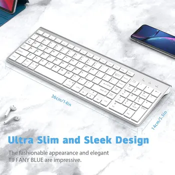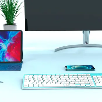 ✿Elegant and Exquisite Design:This keyboard is thin and beautiful with new colors. It uses a matte silver material and a white particle non-slip chassis. The keyboard back stand is very ergonomic and can help you reduce wrist pressure caused by long-time typing.
