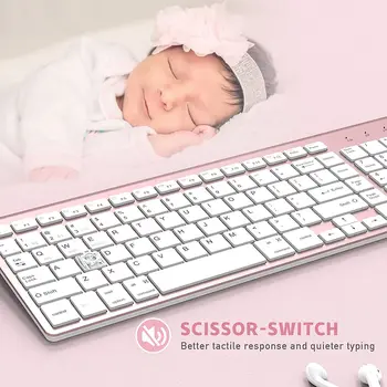 ✿Quiet Click and Scissor- Switch:This bluetooth keyboard uses noise reduction technology to greatly reduce the sound of keystrokes. The Scissor-switch thin and light keys can relieve the fatigue on your wrist or fingers. At the same time, it can ensure a quiet and pleasing work environment.